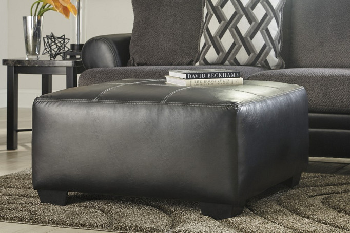 OverviewA striking centerpiece, the Kumasi oversized ottoman merges highly contemporary design with easy, everyday comfort. Thanks to its grand scale, you can stretch the possibilities. Use it as coffee table space or a place for everyone to kick up their heels in style. Prominent stitched detailing enhances the beauty of the feel-good faux leather upholstery. • Corner-blocked frame • Firmly cushioned • High-resiliency foam cushion wrapped in thick poly fiber • Vinyl/polyester/polyurethane upholstery • Exposed feet with faux wood finish